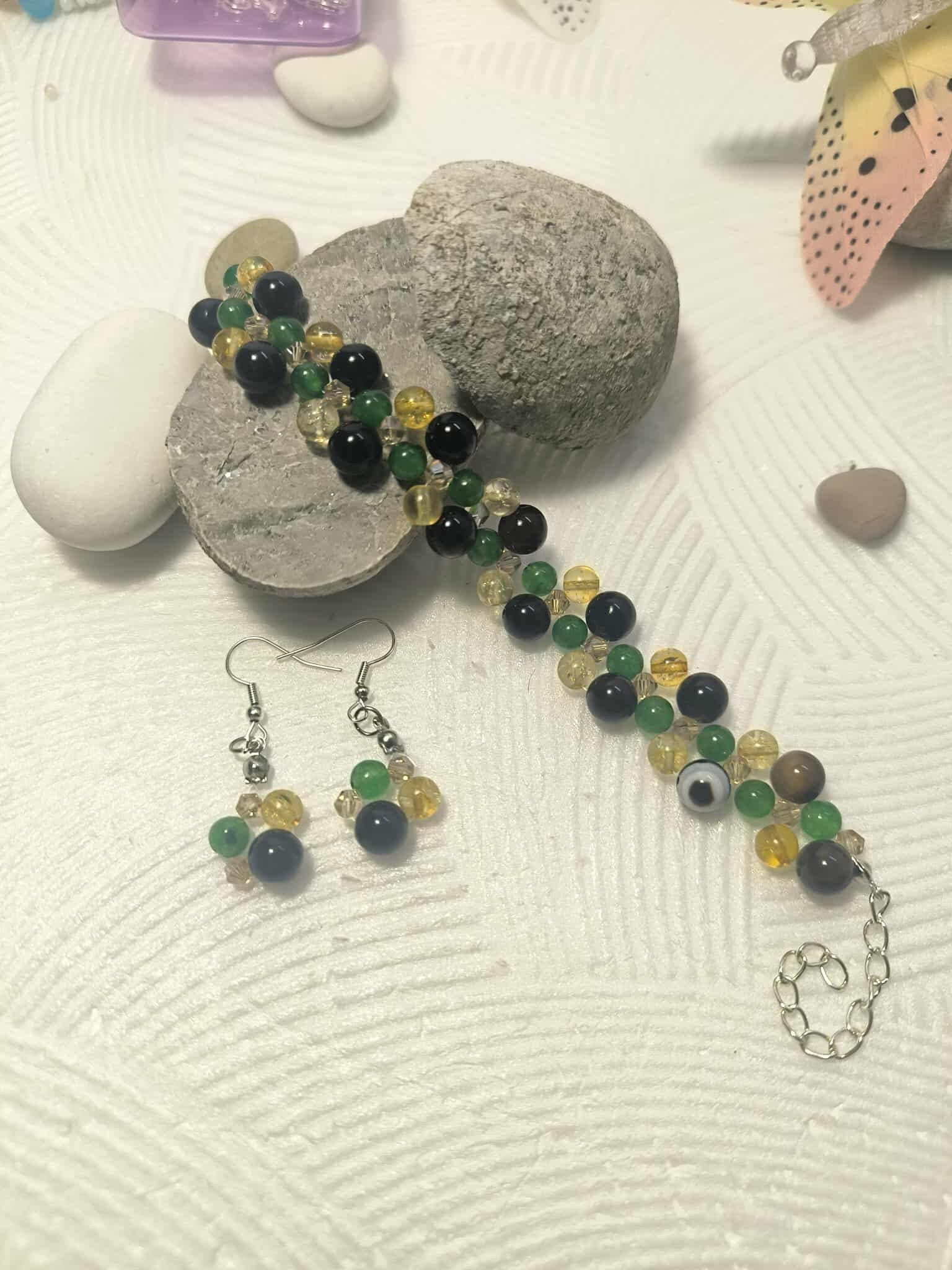 Handcrafted with intention, this set combines Black Onyx, Citrine, Green Aventurine, and a protective Evil Eye bead— creating the perfect balance of strength, luck, and positivity.